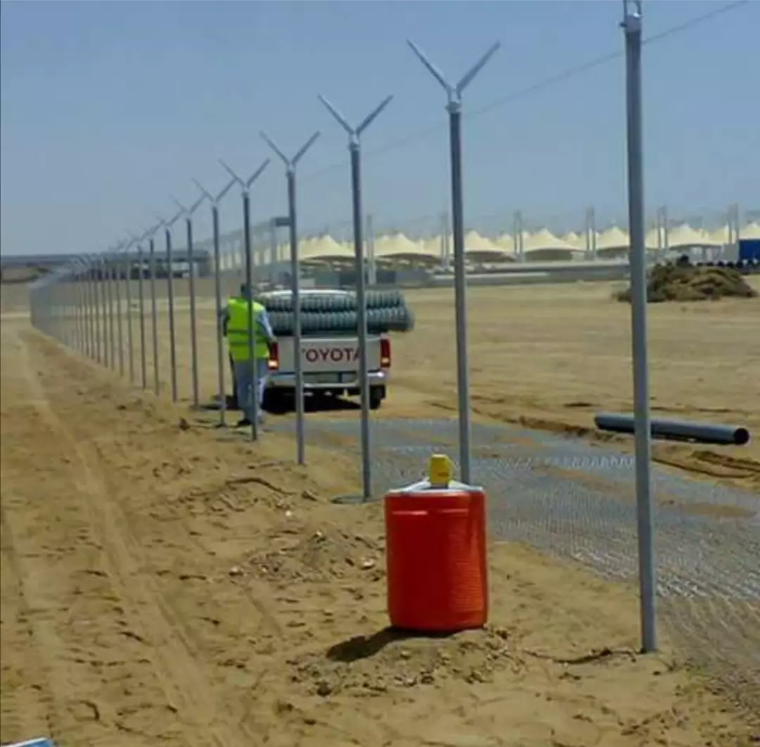 يتم اعتماد المتر الطولي للتوريد والتركيب من خلال عمل قواعد خرسانية عاديه على مسافات متقاربه وصب القواعد صبة خرسانية مقاومة وعمل عمدان من المواسير المجلفن ويتم تركيب وأسيرات الربط و شبك حماية سفلي بالارتفاع المطلوب وعمل الاسلاك الشائكة حسب الطلب وتركيب البوابات حسب المخططات او الاقتراحات المراد تركيبها على اكمل وجه طبقا لأصول الصنعة وتعليمات المختصين والاستشاريين والمهندس المشرف