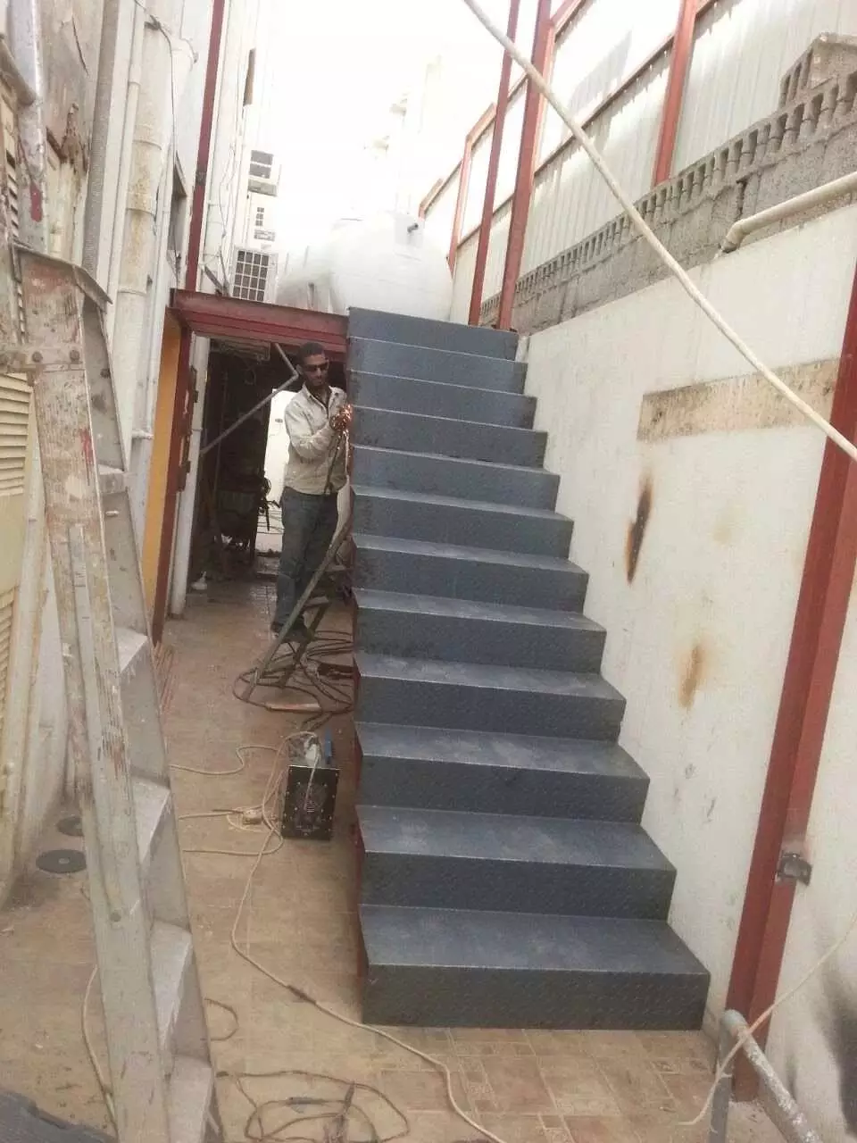 - تفقد سلامة السلم، ومدى صلاحيته للاستعمال المصمم لأجله. توفر الحواجز الواقية من السقوط فيه.